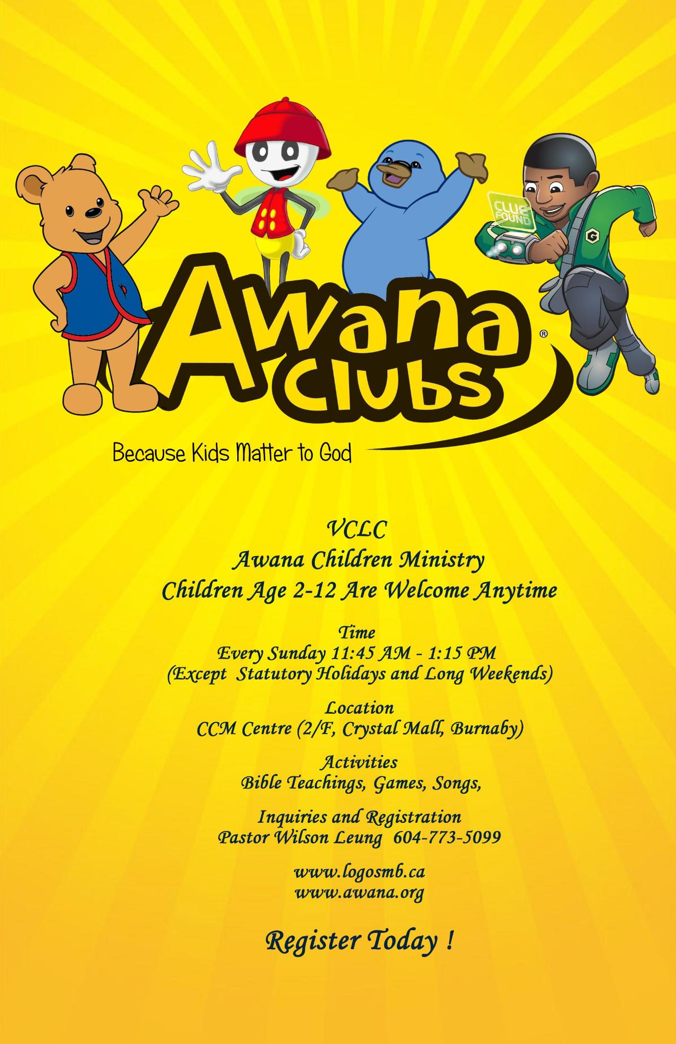 VCLC Awana will restart on September 21, 2025, meeting at CCM every Sunday from 11:30am to 1pm. All children from age 2 to 12 are welcome to join anytime. Anyone interested in serving at Awana, please contact Pastor Wilson (604-773-5099, awana@logosmb.ca ). Joint worship and a brief Awana opening ceremony will also be held at 10am that day - please invite new friends and families to attend.